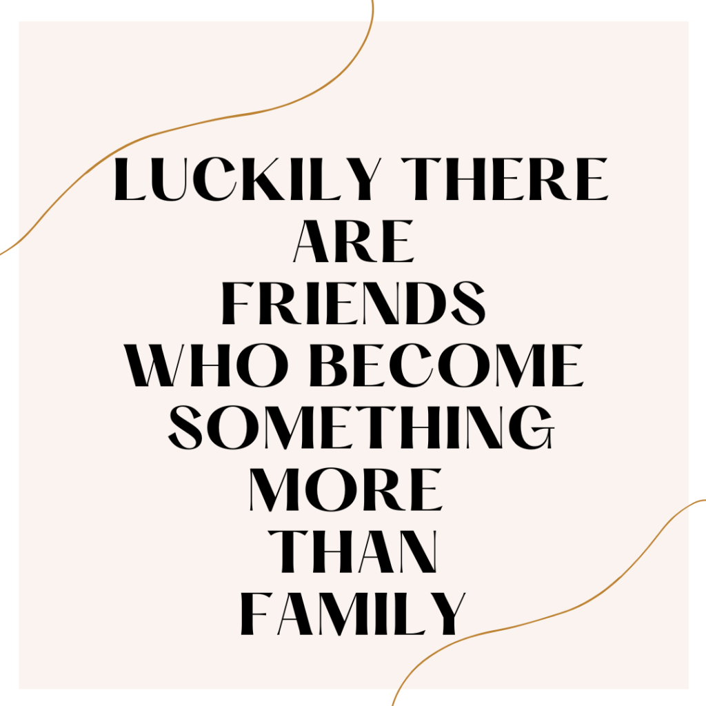 On the other hand, it can also happen that a friend becomes more than family. As I said, you choose your friends. This also has the advantage of finding people who are more on the same wavelength, so that you can create a deeper bond with them.