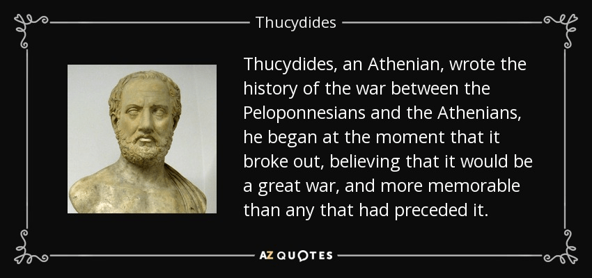 Iβm currently reading Thucydidesβ The Peloponnesian War. I want to quote an excerpt: itβs the scene where the Athenians and Corinthians, two enemies, ask the Spartans for an alliance. So, after hearing both sides, the Spartans had to decide with whom they would enter an alliance. That means whichever one they decide on, the other side would be their enemy. The Spartans gathered for a consultation, and hereβs an excerpt from the speech of the Spartan King Archidamus.